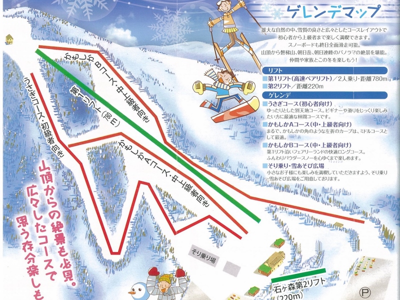 混雑、リフト待ちとは無縁のスノーパラダイスでスキー、スノーボード、そり乗り、雪遊びなど小さなお子様がいるファミリーでも安心して楽しめるスキー場です。