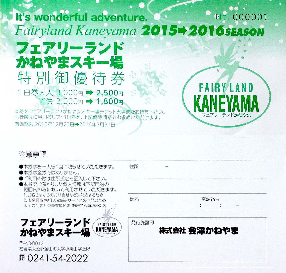 平成27年12月23日~平成28年3月31日の平日限定で19〜22歳のお客様のリフト一日券が