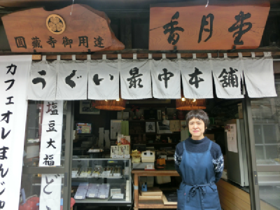 ここが食べ比べ3軒目の香月堂さんです。自家製のあんこが自慢のお店です。是非ご賞味ください。