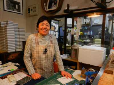 食べ比べ2軒目は、いなばや菓子店です。柳津ではここだけでしか食べられない、つぶあん入りのあわまんじゅうです。是非ご賞味ください。